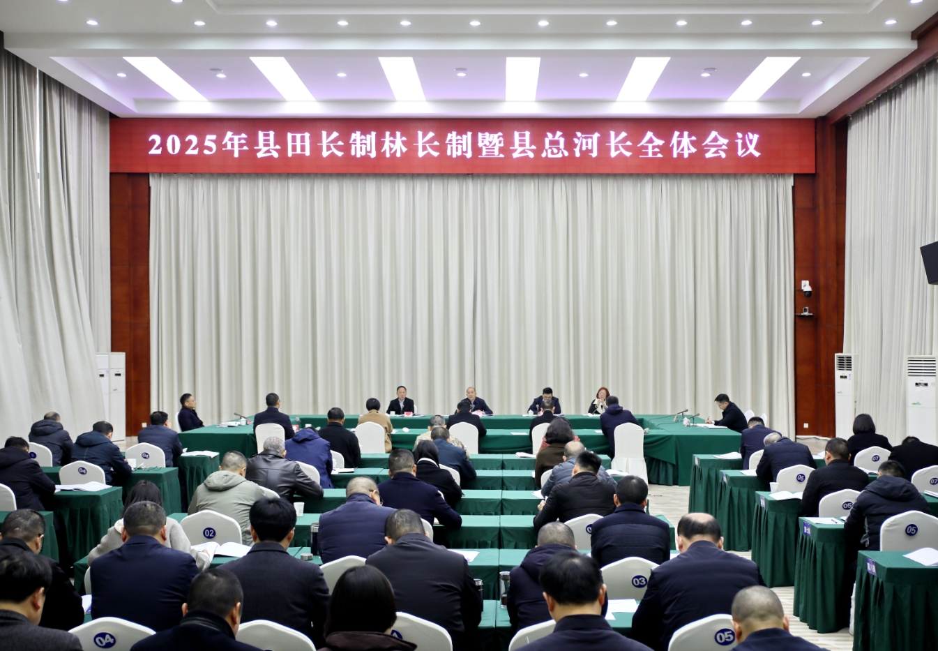 12月17日上午,县委书记、县级田长、县级林长、县总河长陈松柏主持召开2025年县田长制林长制暨县总河长全体会议。会议传达学习《关于全面推行江河保护治理的意见》和 2025年省市有关会议精神,总结全县田长制、林长制、河长制工作开展情况,安排部署下一步重点工作。县委副书记、县长方飞剑,县人大常委会主任邓林,县政协主席王晓梅出席会议。