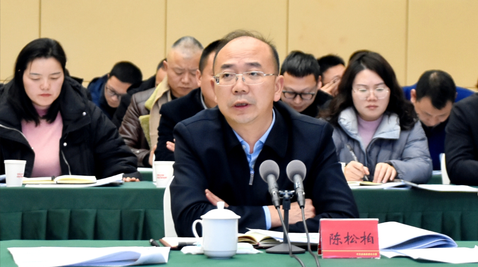 县级领导谭锦华、易鹏、李自立、邓虎成、尹守斌、龙图、康智犹、聂长江、杨鹏参加会议。(岳池融媒记者 刘婧 蔡阳)